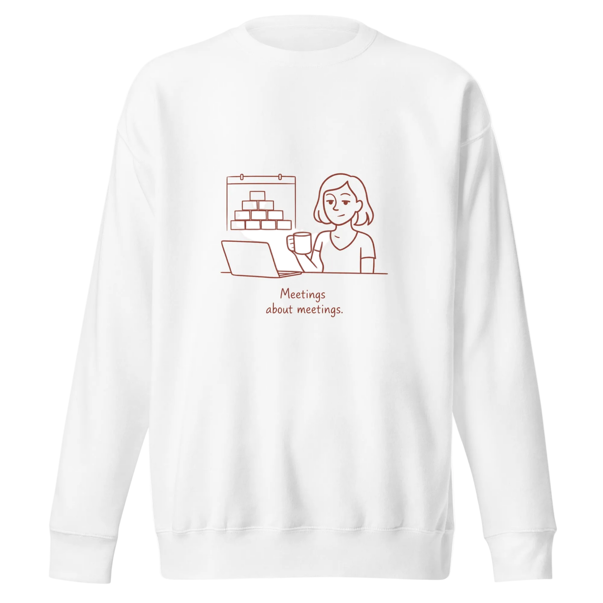 "Meetings about meetings" illustrated Crewneck